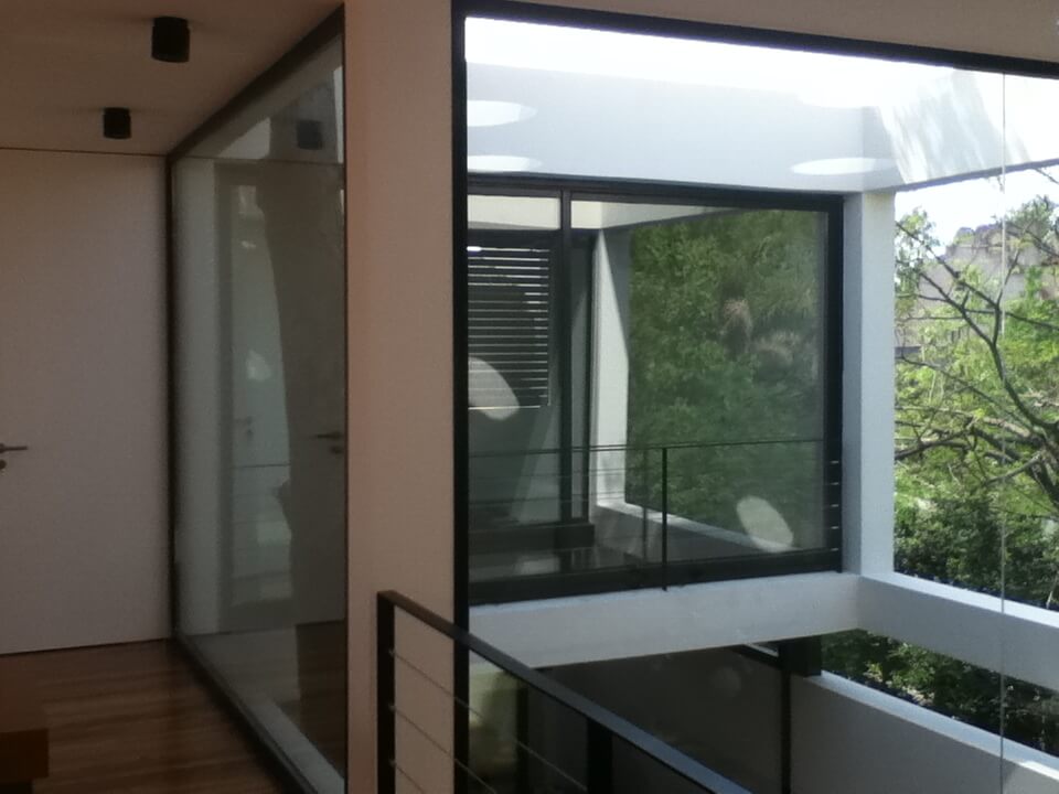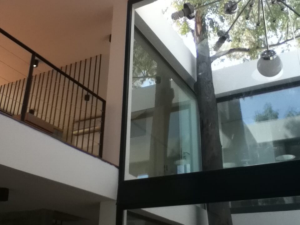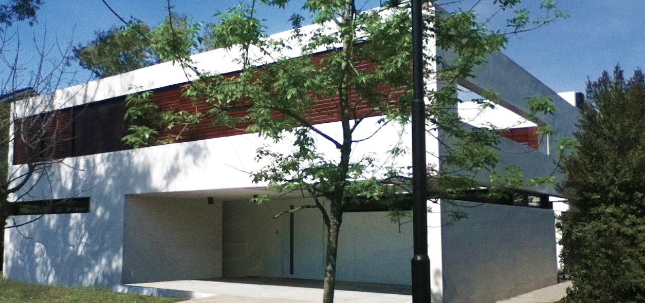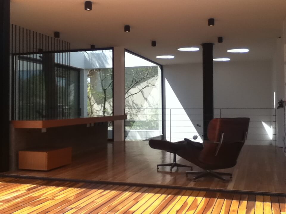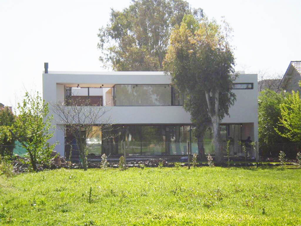 Esta casa se ubica en Tigre, en la zona de Pacheco. El programa era una vivienda permanente para un matrimonio con dos hijos pequeños. Ambos adultos presentaban la necesidad de poder trabajar desde la vivienda sin perder de vista la posibilidad de estar en contacto con sus hijos. El proyecto busca la optimización de las dos fachadas principales dentro de en este tipo de lotes, la del frente y la del contrafrente. En planta baja se disponen hacia el contrafrente el espacio más importante (cocina, estar-comedor). El estar es un espacio en doble altura que se encuentra contenido entre la galería y un patio interior, generando una espacialidad que oxigena tanto la planta baja como el primer piso. En la planta alta se disponen las habitaciones de los niños hacia el frente y la habitación principal hacia el contrafrente encima del espacio de galería de planta baja. Ambos paquetes de habitaciones están separados por un espacio que alberga las funciones del estudio de la pareja y el playroom de los niños, con balconeo hacia el estar, vistas hacia el patio interno, y expansión hacia una terraza lateral que llena de luz el espacio.