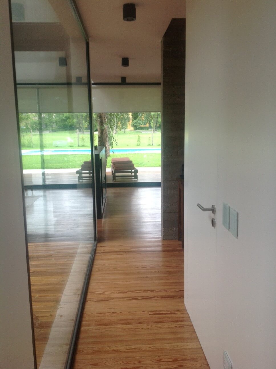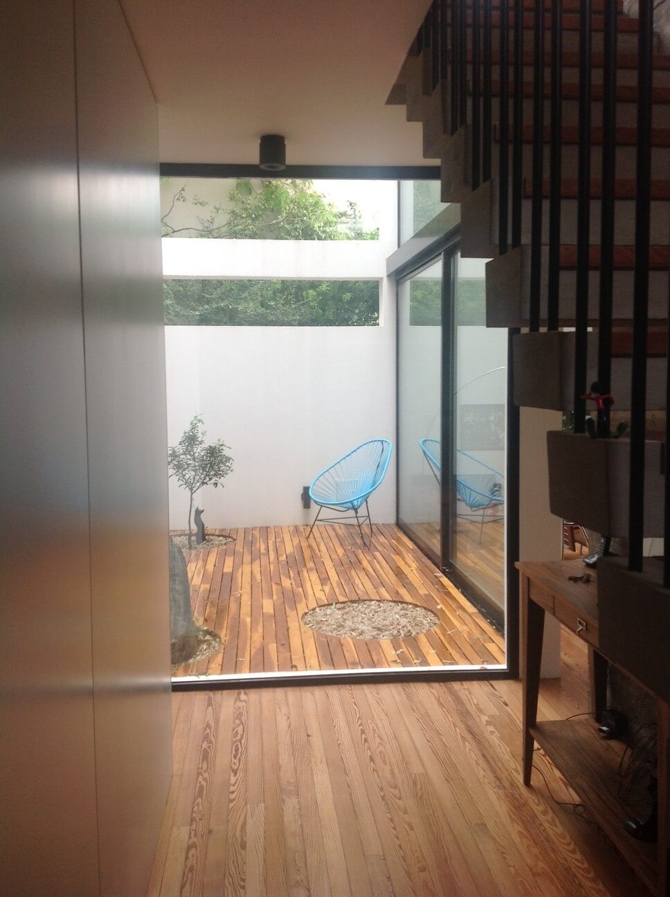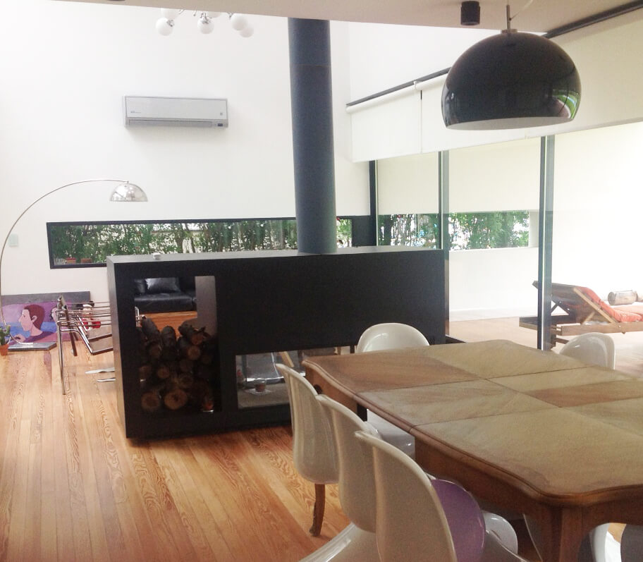 Esta casa se ubica en Tigre, en la zona de Pacheco. El programa era una vivienda permanente para un matrimonio con dos hijos pequeños. Ambos adultos presentaban la necesidad de poder trabajar desde la vivienda sin perder de vista la posibilidad de estar en contacto con sus hijos. El proyecto busca la optimización de las dos fachadas principales dentro de en este tipo de lotes, la del frente y la del contrafrente. En planta baja se disponen hacia el contrafrente el espacio más importante (cocina, estar-comedor). El estar es un espacio en doble altura que se encuentra contenido entre la galería y un patio interior, generando una espacialidad que oxigena tanto la planta baja como el primer piso. En la planta alta se disponen las habitaciones de los niños hacia el frente y la habitación principal hacia el contrafrente encima del espacio de galería de planta baja. Ambos paquetes de habitaciones están separados por un espacio que alberga las funciones del estudio de la pareja y el playroom de los niños, con balconeo hacia el estar, vistas hacia el patio interno, y expansión hacia una terraza lateral que llena de luz el espacio.