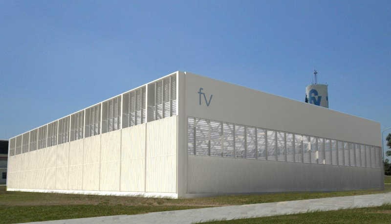 Este proyecto formaba parte también del plan de crecimiento de FV en Villa Rosa, provincia de Buenos Aires. El objeto del edificio era generar una nave industrial cuyo objeto primordial fuera albergar nuevas maquinarias de producción con las que la empresa se está capitalizando con la particularidad de poder crecer en un futuro con oficinas de apoyo. La propuesta se basa en un la generación de un sistema estructural metálico y modular. La estructura fue diseñada de modo tal que los cerramientos exteriores que conforman la cáscara del edificio puedan ser removidos en caso de necesidad y reemplazados por módulos de crecimiento adosado a la misma. La aparente espontaneidad en la disposición de dichos volúmenes está relacionada con los distintos sectores de producción de la nave y la posibilidad de crecimiento del sector administrativo de cada uno de ellos en forma independiente al resto.