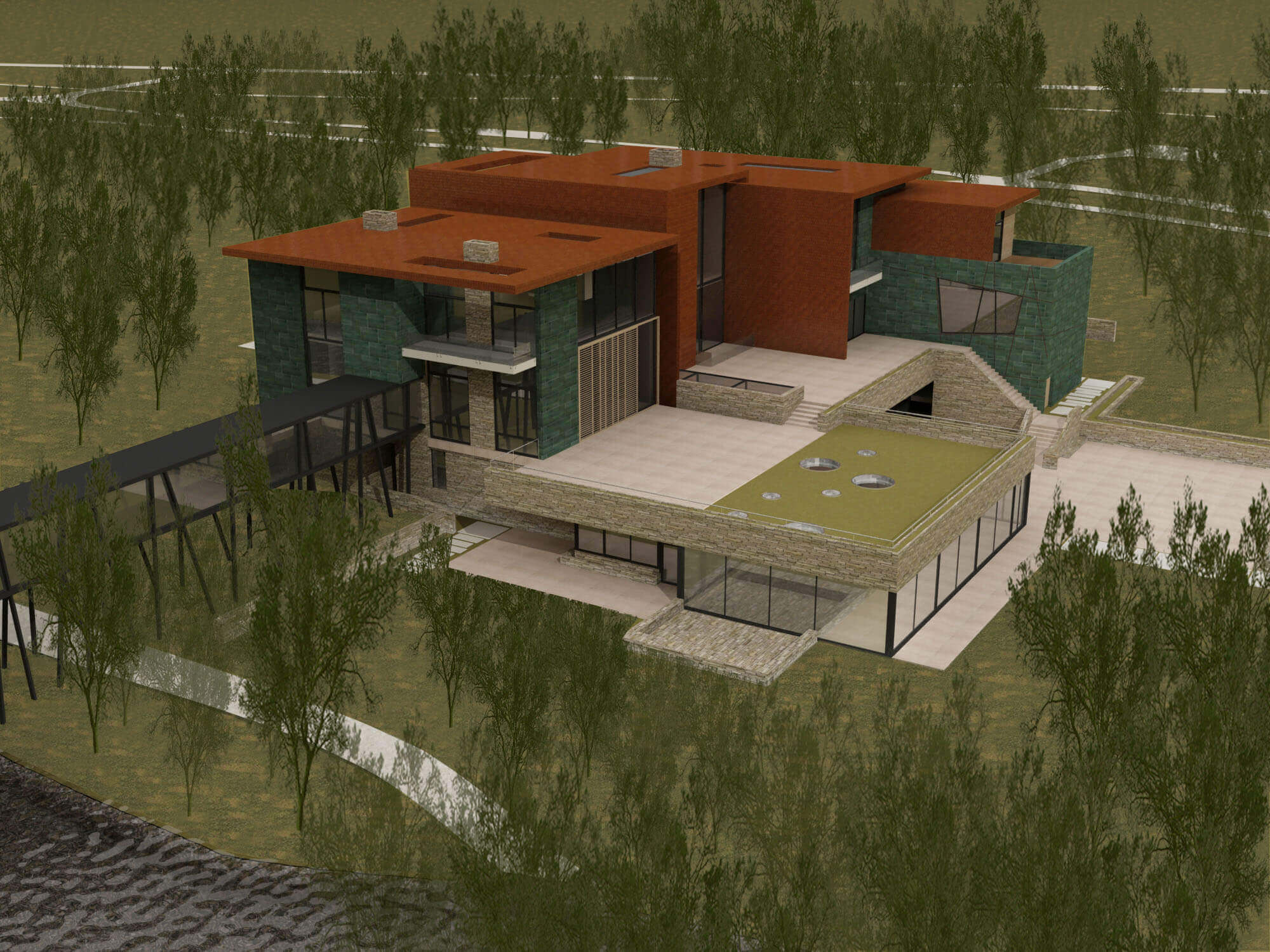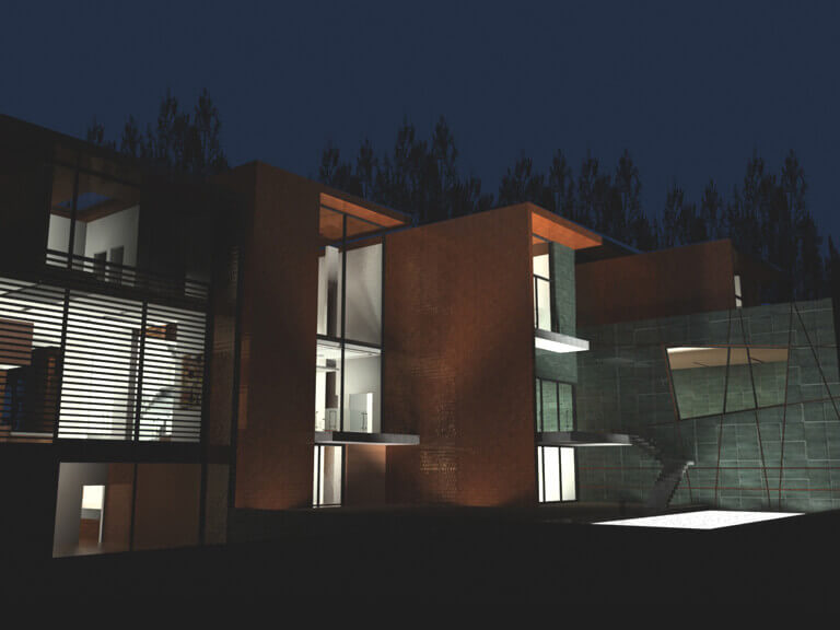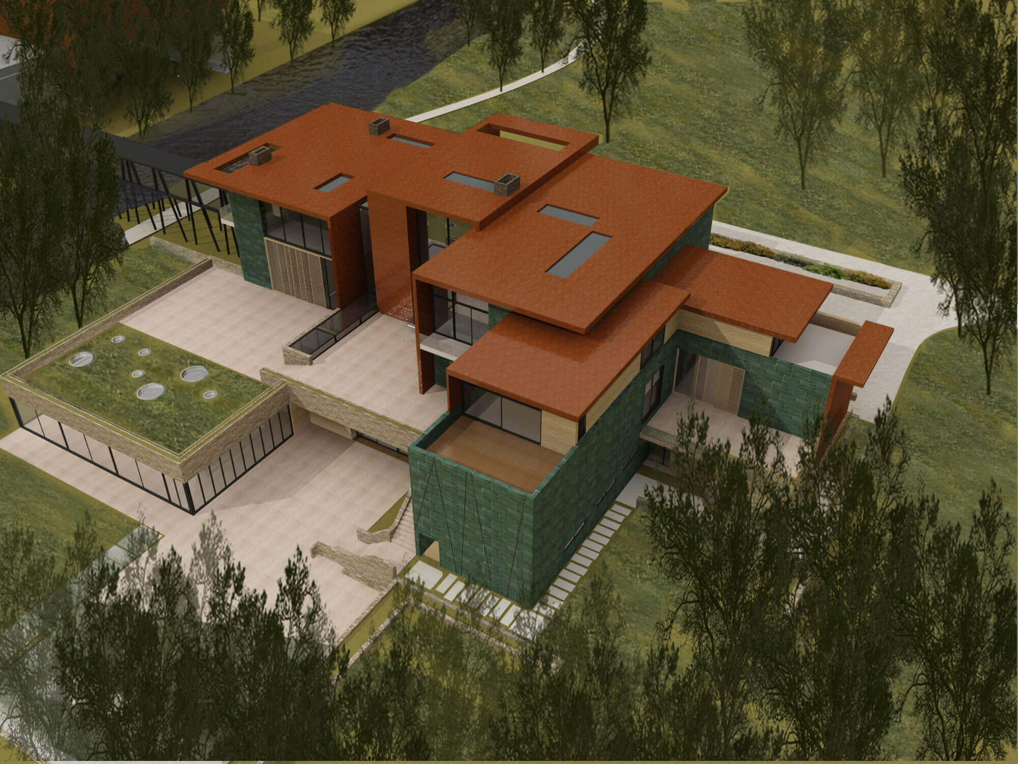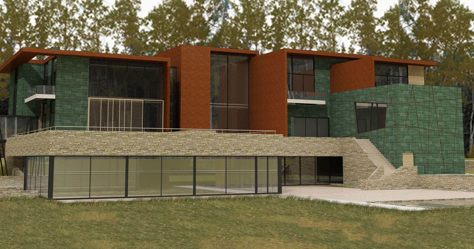 Esta casa se encuentra situada en un bosque ubicado en las afueras de Moscú. El programa consistía en una casa de unos 2500m2 con una serie de requerimientos poco habituales (sala de cine, piscina, sala de relajación y yoga), que generaban la necesidad de pensar en varios edificios que forma al edificio, con la consecuente dificultad para que todos ellos formen un todo perfectamente armónico. La volumetría y el lenguaje general de la casa es una metáfora del bosque que lo rodea, tanto en lo cromático, con el cobre y sus diferente tratamientos para lograr colores tales como el verde y el marrón, como en lo volumétrico con sus techos a diferentes alturas que reflejan la continuidad dentro de la variedad que todo bosque posee.